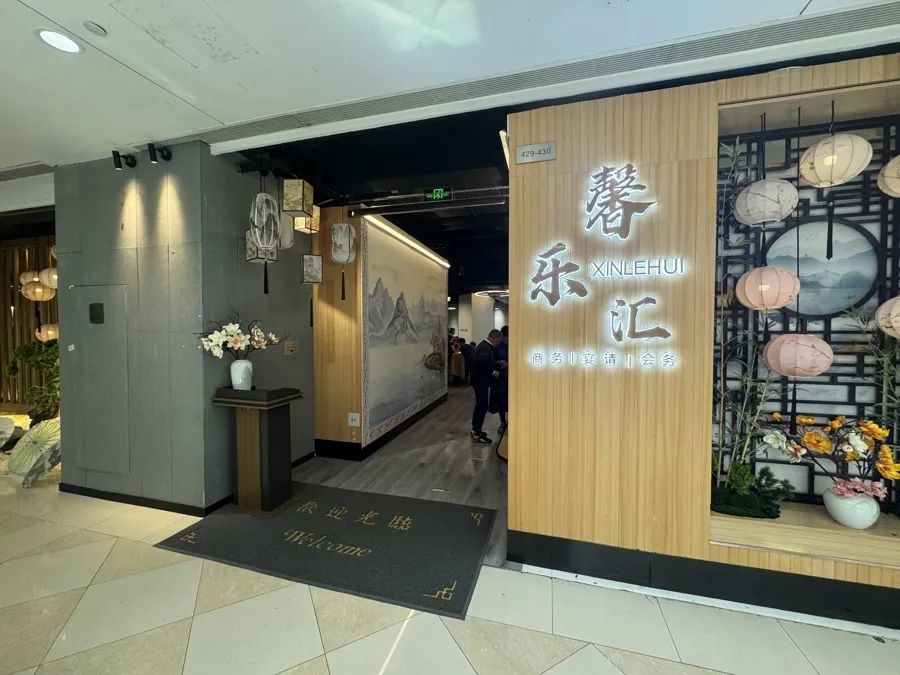 周二中午11时,位于宜山路光启城4楼的“馨乐汇一日聚”已座无虚席,十几桌全满,顾客清一色都是老年人。除了用餐,他们还自发举行了一场防范电信诈骗宣讲会。这样的场景在工作日的午休时间极为少见,客流量是其他饭店的两倍,整个商场独此一家。它并非传统意义上的普通餐厅,更像是饭店、会所、日托养老机构,甚至是老年大学的综合体。